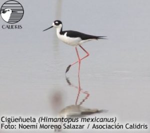 Mide cerca de 37 cm. Es inconfundible por su llamativa coloración de blancos y negros; tiene el pico delgado, largo y agudo; las patas son rosadas y muy largas. Es la única especie de su familia en Colombia. Se encuentra en bandadas de medianas a grandes; a veces se pueden ver individuos solitarios o parejas. Es común observarla en las orillas de los ríos o lagunas, en busca de insectos u otros artrópodos.